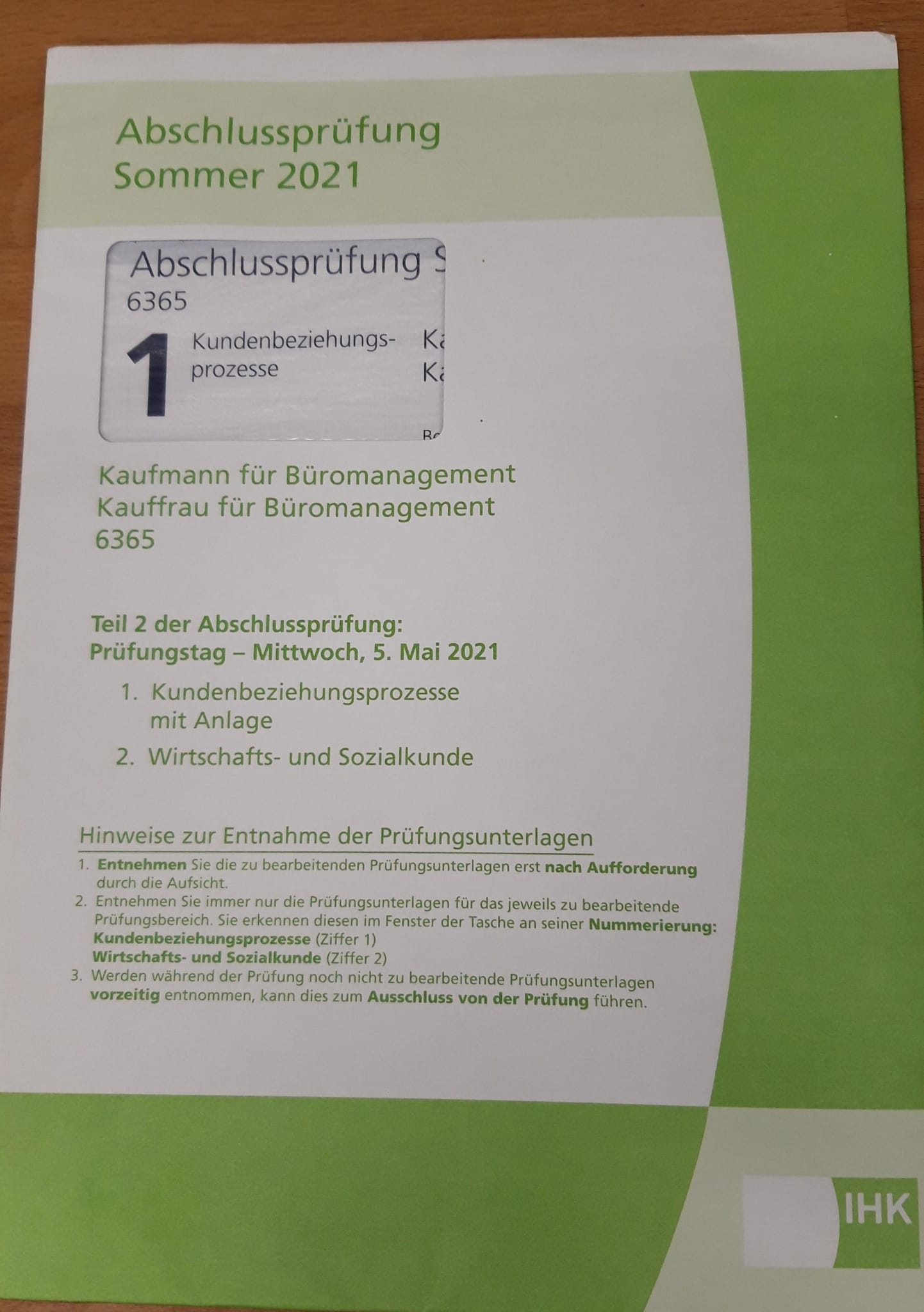 Abschlussprüfung Sommer 21 Kaufmann für Büromanagement