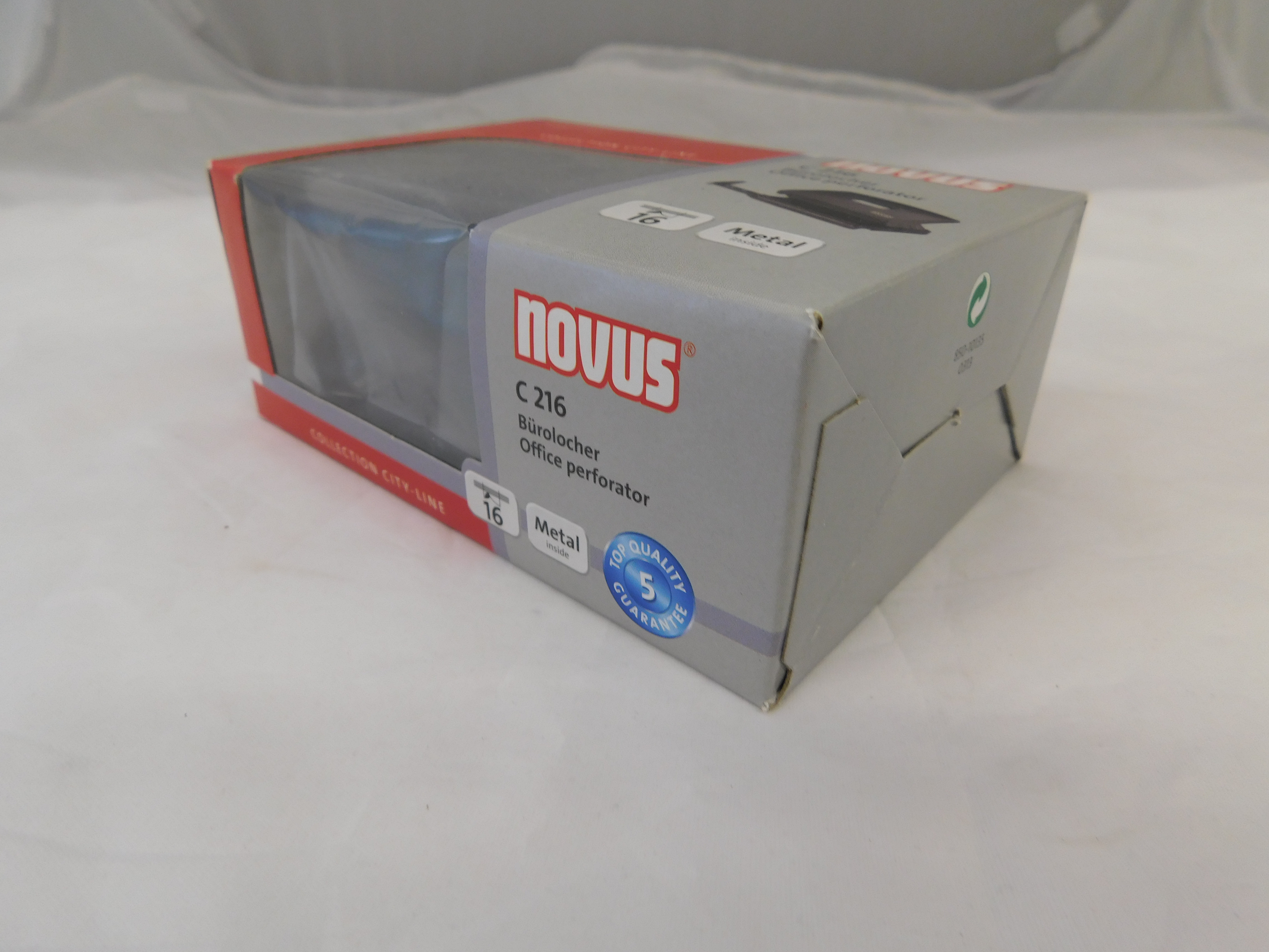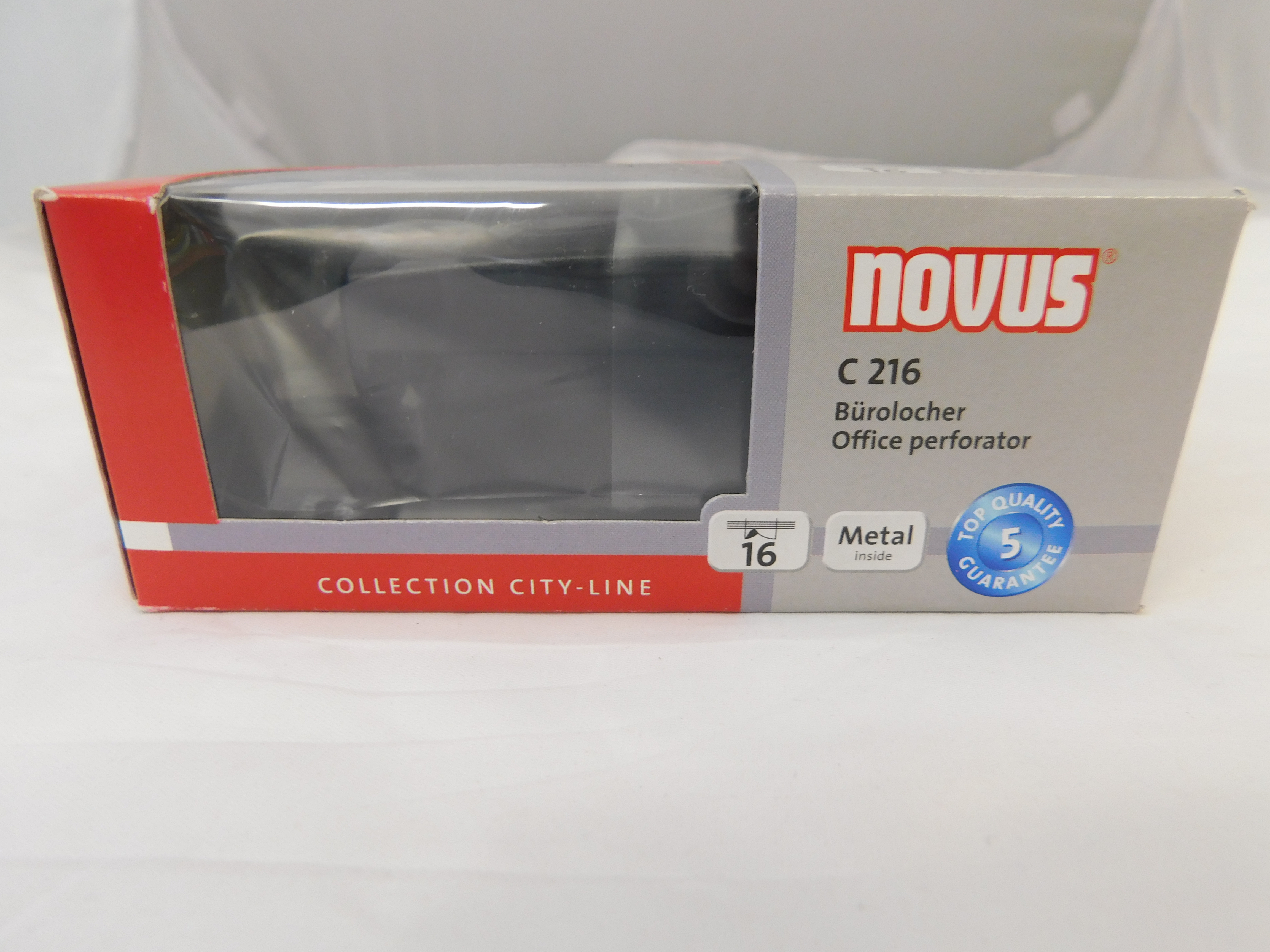 Der Novus C216 ist ein zuverlässiger Bürolocher, der bis zu 16 Blatt Papier sauber und präzise perforiert. Sein robustes Metallgehäuse und der rutschfeste Boden sorgen für stabilen Halt beim Arbeiten. Mit der integrierten Anschlagschiene lassen sich Dokumente exakt positionieren und ordentlich abheften.